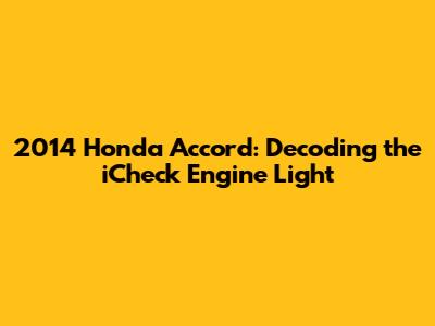 2014 Honda Accord: Decoding The ICheck Engine Light