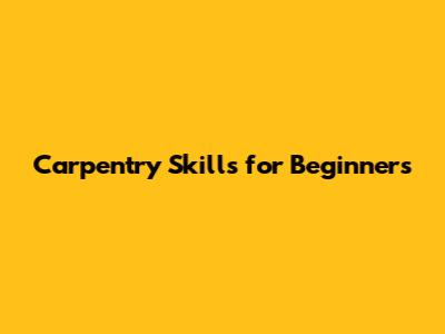 Carpentry Skills For Beginners