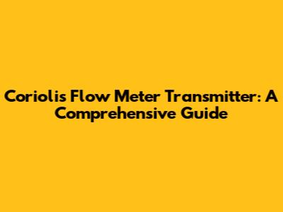 Coriolis Flow Meter Transmitter: A Comprehensive Guide