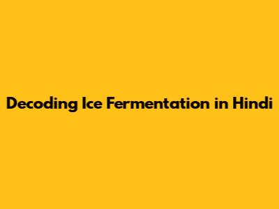 Decoding Ice Fermentation In Hindi