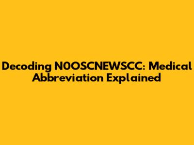Decoding N0OSCNEWSCC: Medical Abbreviation Explained