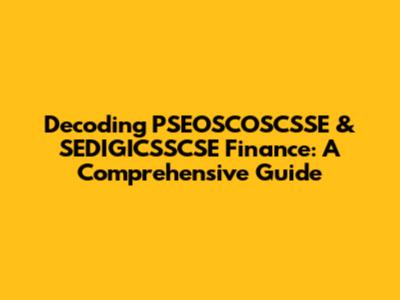 Hey finance enthusiasts! Let's dive deep into the world of PSEOSCOSCSSE and SEDIGICSSCSE finance. These acronyms might seem like a mouthful, but understanding them is key to navigating certain financial landscapes. In this guide, we'll break down the essentials, explore their significance, and provide you with insights that will sharpen your financial acumen. Get ready to decode these terms and gain a solid understanding of how they function! We're talking about demystifying concepts, providing practical examples, and equipping you with the knowledge to make informed decisions. Let's get started!