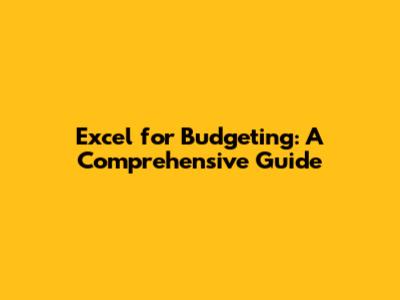Excel For Budgeting: A Comprehensive Guide