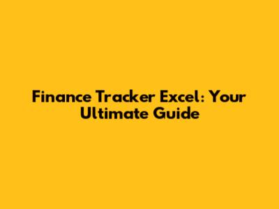 Finance Tracker Excel: Your Ultimate Guide