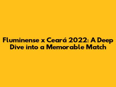 Hey guys! Let's talk about that thrilling Fluminense x Ceará match from 2022. If you're anything like me, you love dissecting every pass, tackle, and goal. So, buckle up as we explore the highlights, key stats, and unforgettable moments that defined this clash. For fans of Brazilian football, this match was definitely one to remember, showcasing both tactical prowess and individual brilliance. Whether you're a die-hard supporter of Fluminense, a loyal fan of Ceará, or simply a football enthusiast, there's plenty to unpack from this encounter. We'll delve into the pre-match expectations, analyze the strategies employed by both teams, and relive the critical incidents that shaped the final result. Get ready for an in-depth analysis that goes beyond just the scoreline, offering insights into the players' performances, the coaches' decisions, and the overall flow of the game. This match was a rollercoaster of emotions, with twists and turns that kept fans on the edge of their seats until the final whistle. The atmosphere in the stadium was electric, adding to the intensity of the contest and creating a truly unforgettable spectacle. We'll also explore the significance of this match in the context of the wider league season, examining how the result impacted each team's aspirations and ambitions. So, let's dive in and relive the excitement of Fluminense x Ceará 2022, a match that will undoubtedly be remembered for its drama, skill, and passion. From stunning goals to nail-biting saves, this game had it all, and we're here to break it all down for you.