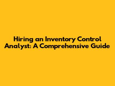 Hiring An Inventory Control Analyst: A Comprehensive Guide