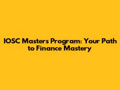 IOSC Masters Program: Your Path To Finance Mastery