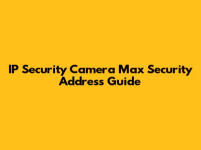 IP Security Camera Max Security Address Guide