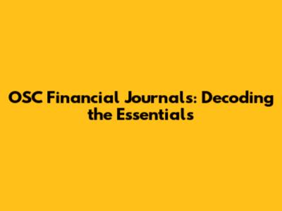 OSC Financial Journals: Decoding The Essentials