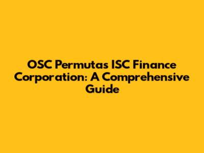 Hey guys! Let's dive into the world of OSC Permutas ISC Finance Corporation. This guide is designed to break down everything you need to know about this financial institution, making it easy to understand even if you're not a finance whiz. We'll cover what they do, the services they offer, and how they operate. Ready to get started? Let’s jump in!