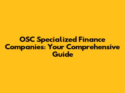 OSC Specialized Finance Companies: Your Guide