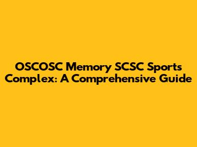 OSCOSC Memory SCSC Sports Complex: A Comprehensive Guide