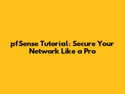 PfSense Tutorial: Secure Your Network Like A Pro