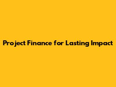 Project Finance For Lasting Impact