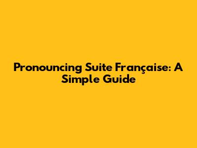 Pronouncing Suite Française: A Simple Guide