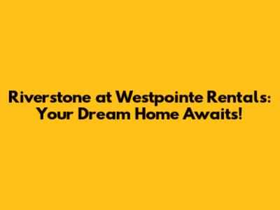 Hey guys! Are you on the hunt for a fantastic new place to call home? Look no further than Riverstone at Westpointe! This awesome community offers a variety of rentals, and we're here to give you the lowdown on everything you need to know. Let's dive in and see why Riverstone at Westpointe might just be your perfect fit.