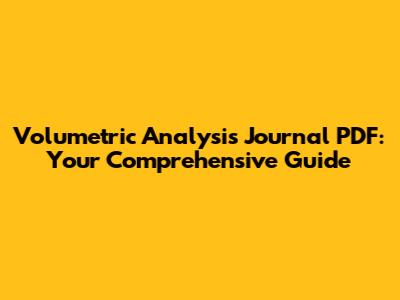 Volumetric Analysis: Journal PDFs & Guides