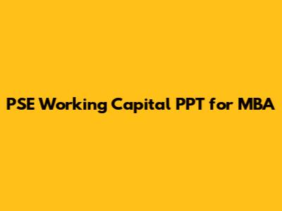 Working Capital PPT For MBA: PSE Insights